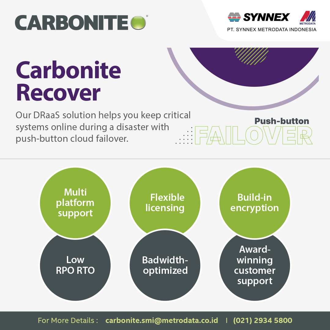 Carbonite Recover is a DRaaS offering helping you ensure higher levels of uptime for top-tier systems with push-button cloud failover.