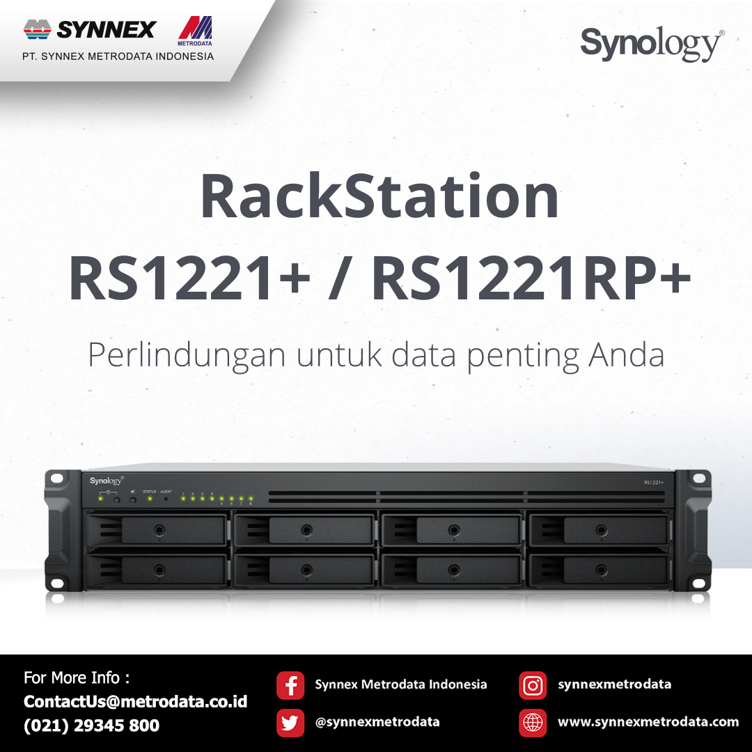 Introducing RackStation RS1221+ and RS1221RP+ (redundant power) 2U 8-bay rackmounted storage servers. Being the first RackStation series units built around the AMD Ryzen V1500B processor, RS1221+ and RS1221RP+ bring a huge leap forward in performance at less than half the depth of standard 2U rackmounted devices. Will available soon in Synnex Metrodata Indonesia.