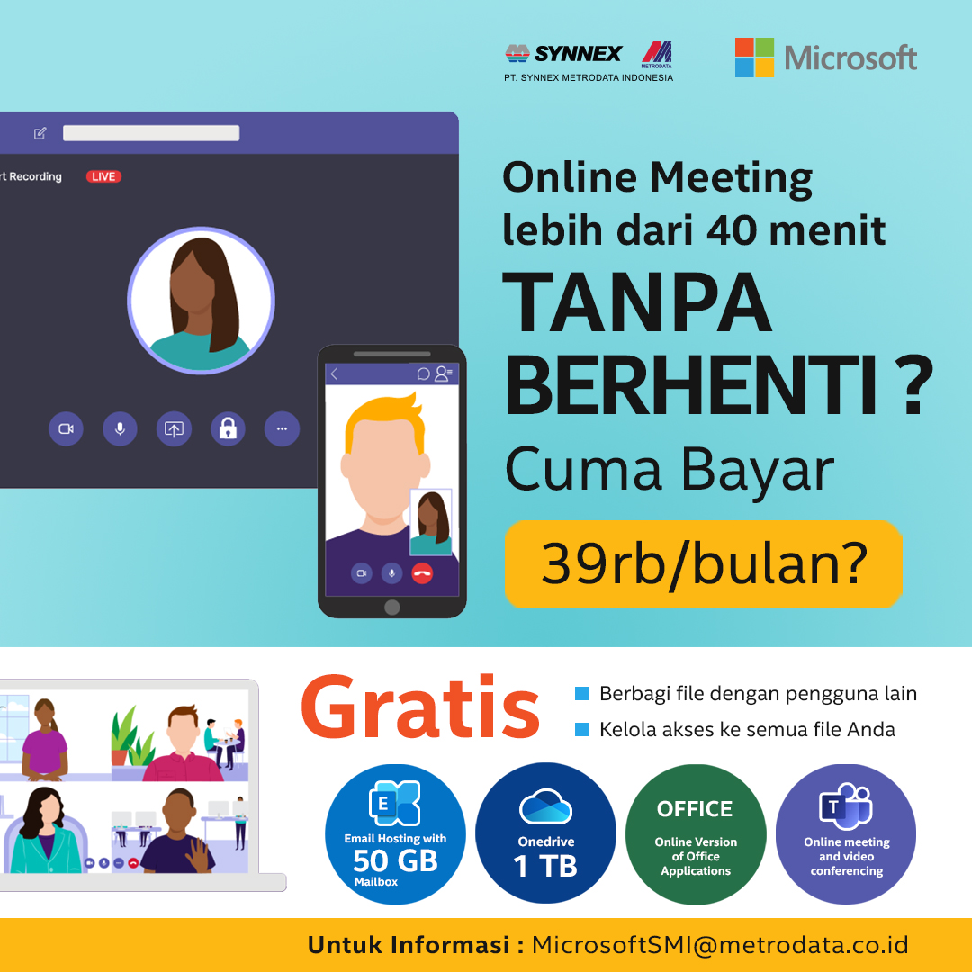 Online meeting tanpa berhenti hanya membayar 39rb/bulan.