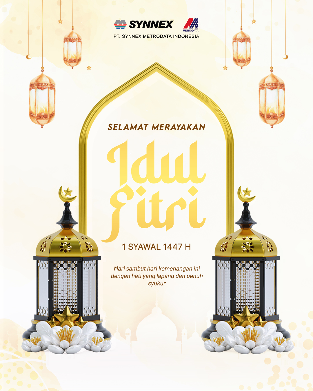 Keluarga Besar Synnex Metrodata Indonesia mengucapkan: Selamat Hari Raya Idul Fitri 1447 Hijriah. Minal ‘Aidin Wal Faizin, Mohon Maaf Lahir dan Batin.