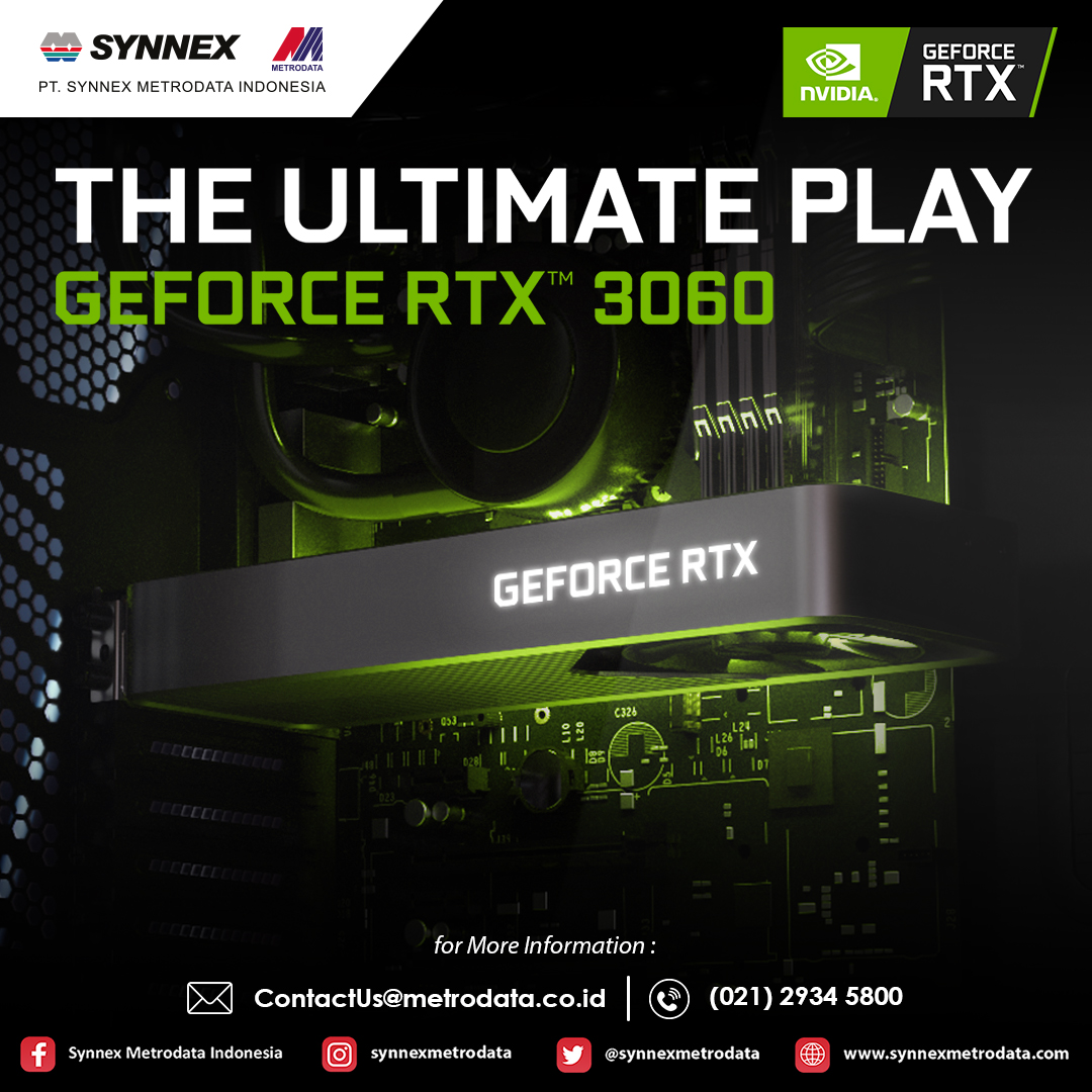 GeForce RTX 3060 membawa kekuatan dari Ampere, Generasi ke 2 dari arsitektur kami kepada setiap gamer.