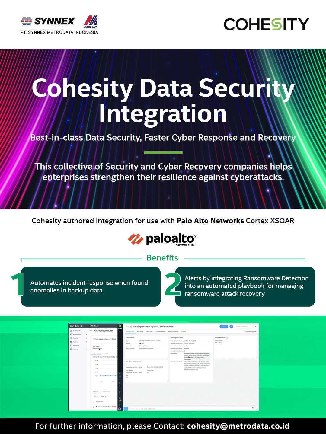 Cohesity collaborates with your security vendors to deliver technical integrations that bridge enterprise IT and security. These integrations share context and enable new automated workflows to help mature cyber threat defenses and accelerate response and recovery in the event of a cyberattack.