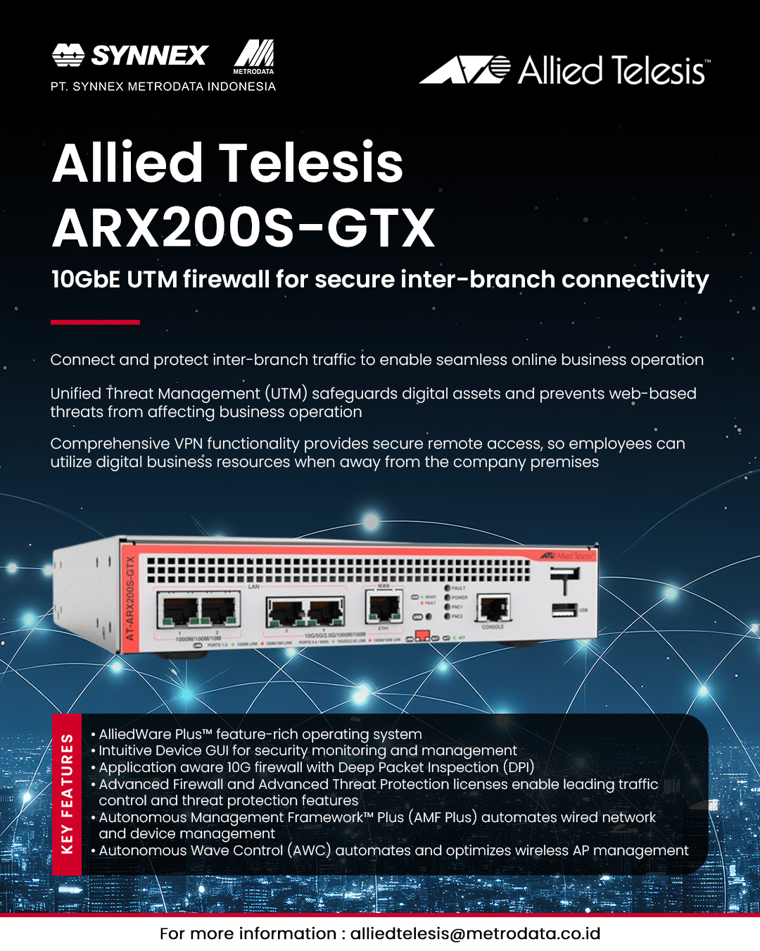 Allied Telesis ARX200S-GTX is the ideal choice for modern businesses that demand powerful security and high-speed connectivity ⚡