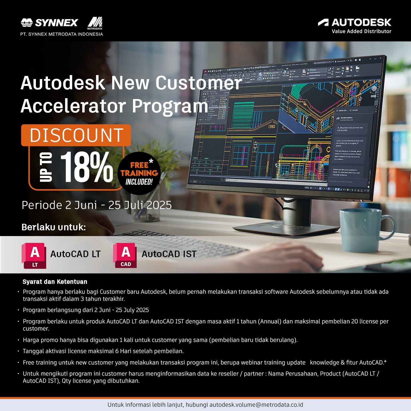 🚨 NEW CUSTOMER ALERT! 🚨✨ Autodesk New Customer Accelerator Program ✨Nikmati:🔸 Diskon sampai 18% untuk AutoCAD LT & AutoCAD IST🔸 Free training🔸 Berlaku buat pembelian baru, maksimal 20 license 🗓 [...]