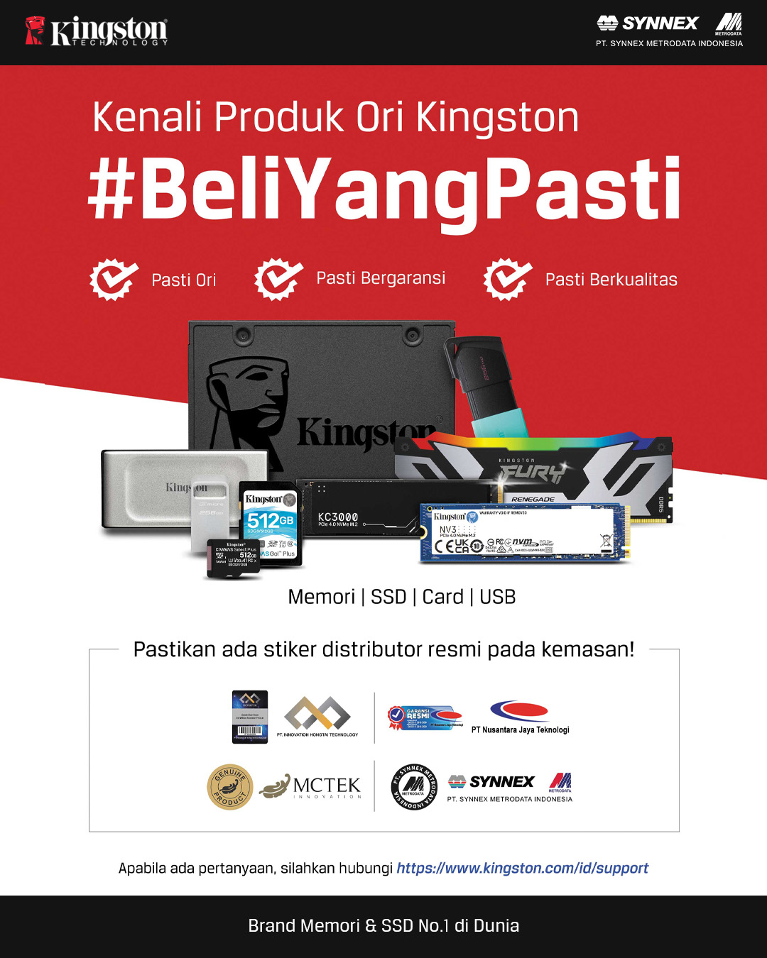 Saat membeli produk Kingston seperti SSD atau DRAM, kamu perlu memastikan bahwa produk tersebut asli dan bergaransi resmi. Salah satu cara paling mudah untuk mengeceknya adalah dengan melihat stiker logo distributor resmi yang [...]
