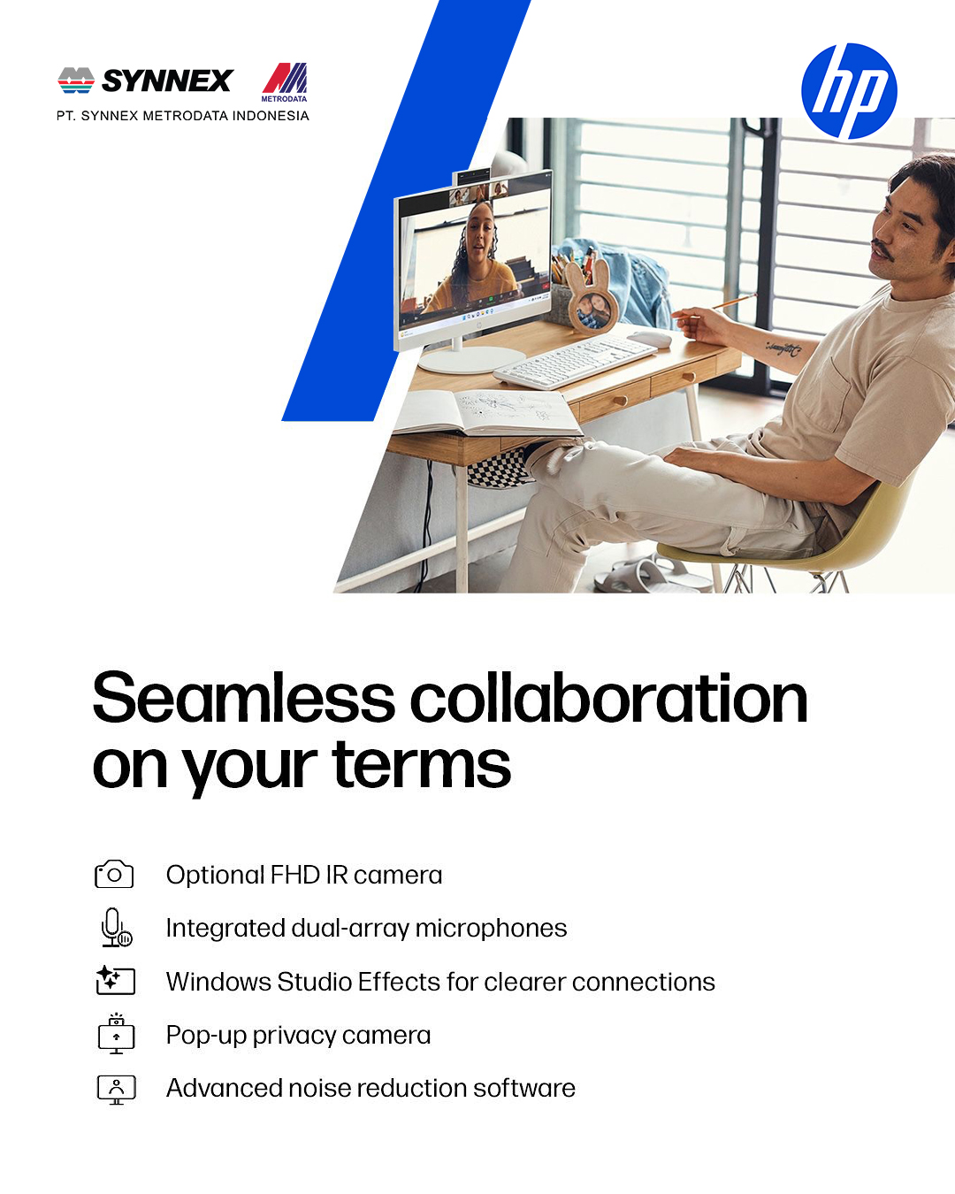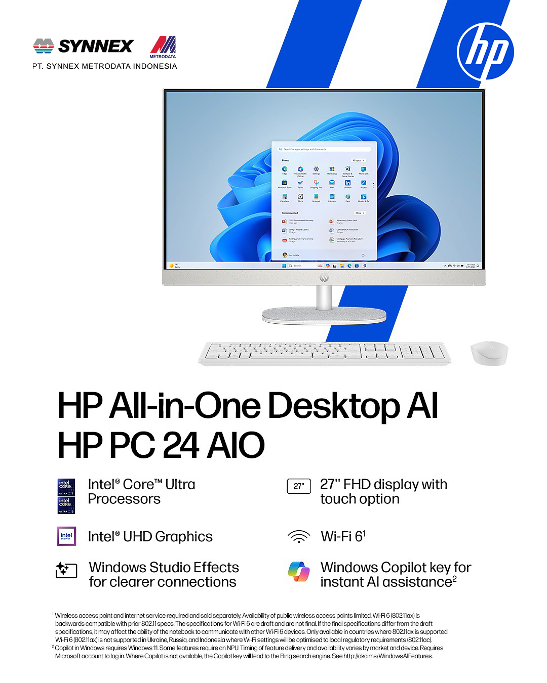 HP PC 24 dan 27 AIO hadir dengan prosesor Intel® Core™ Ultra bertenaga AI, layar FHD yang luas (opsi touchscreen), dan tombol Windows Copilot untuk asisten AI instan. 🚀